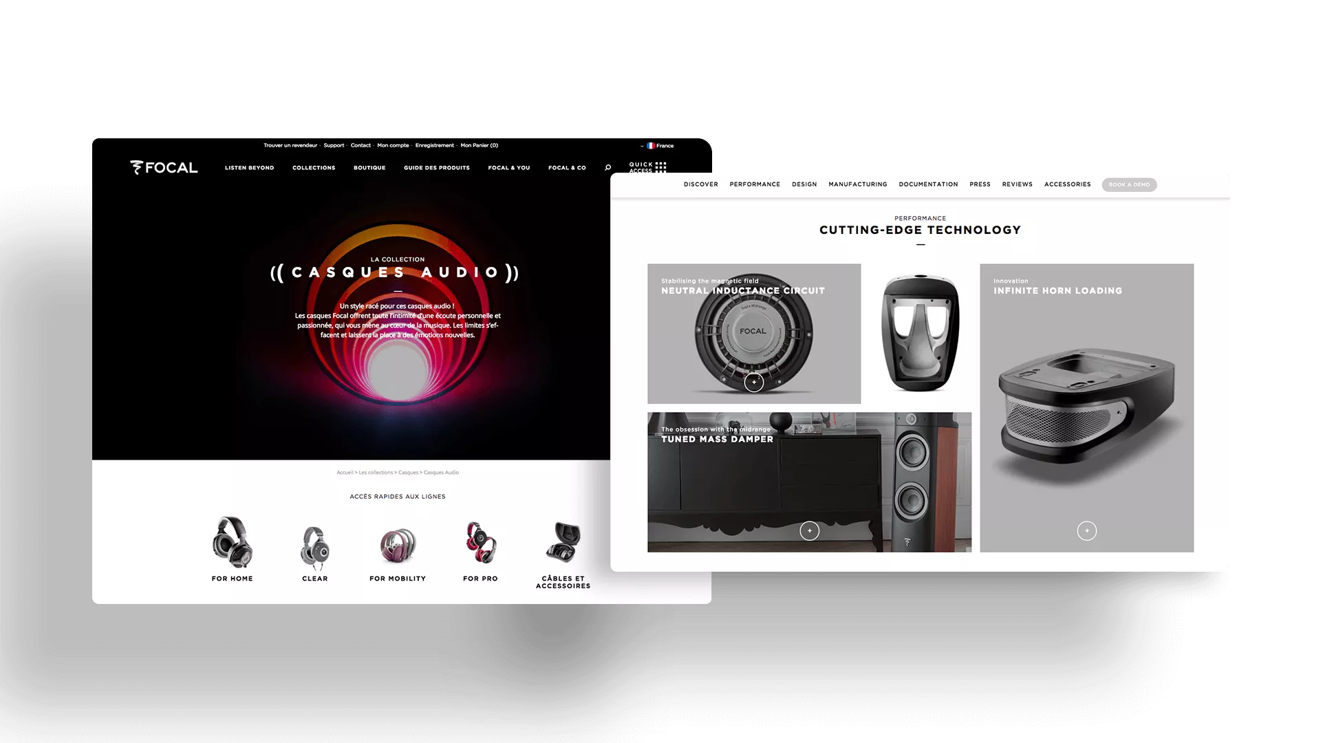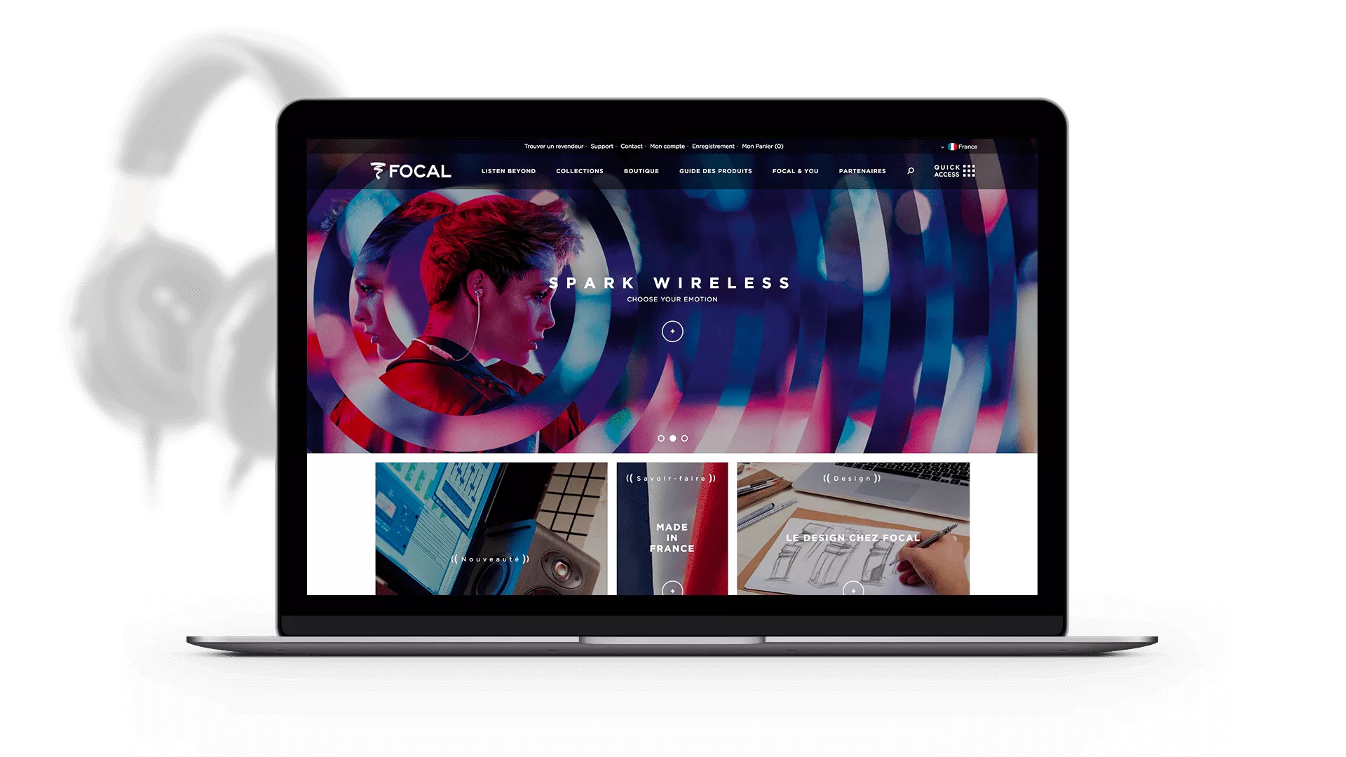 FOCAL - JMLAB, leader mondial dans la fabrication de solutions haute-fidélité, nous a chargé en 2016 de refondre son site internet afin de proposer une expérience utilisateur aussi proche des émotions générées par ses enceintes et systèmes Home Cinéma !